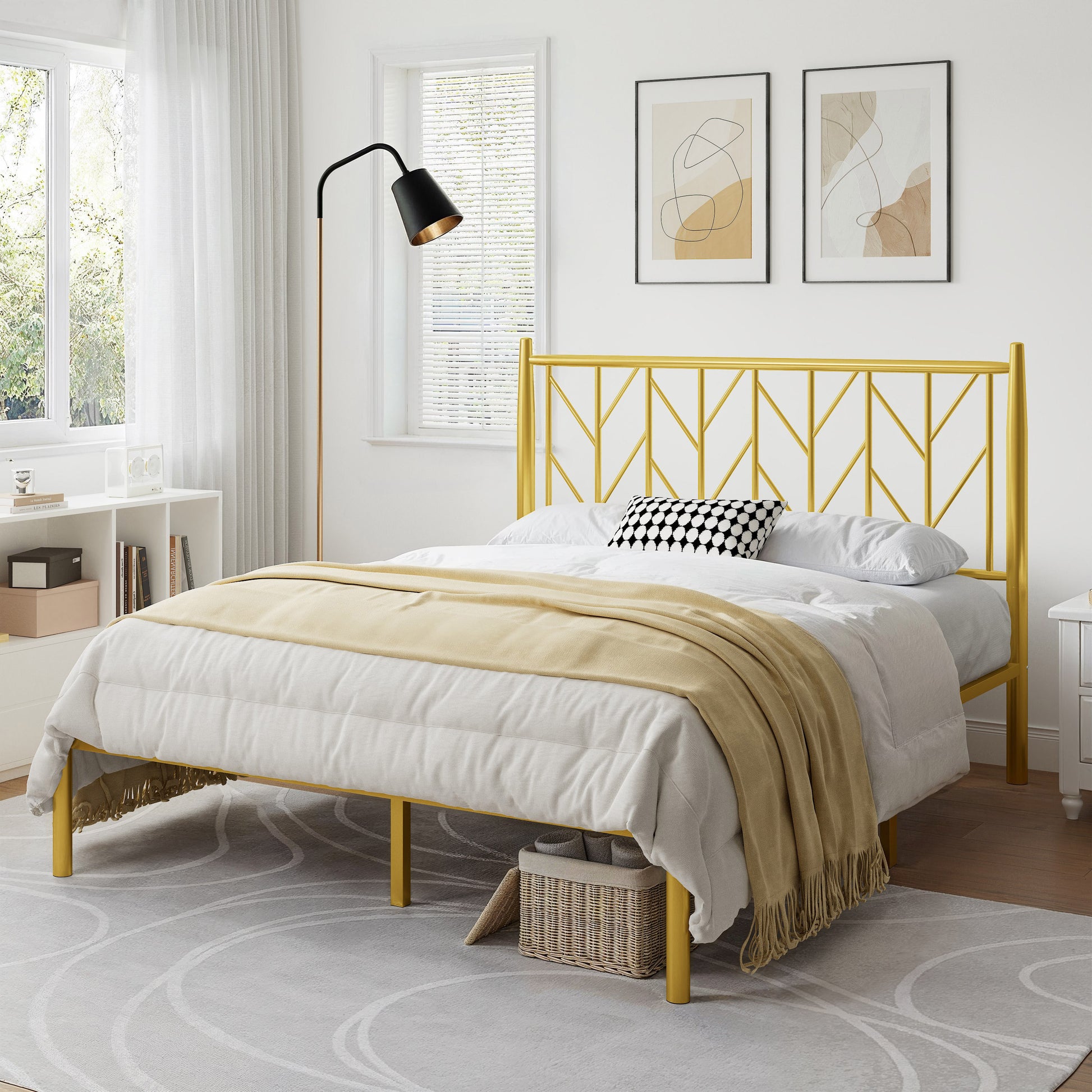 Allewie Gold Modern Platform Bed Frame with Vintage Headboard, 12'' Under-bed Storage