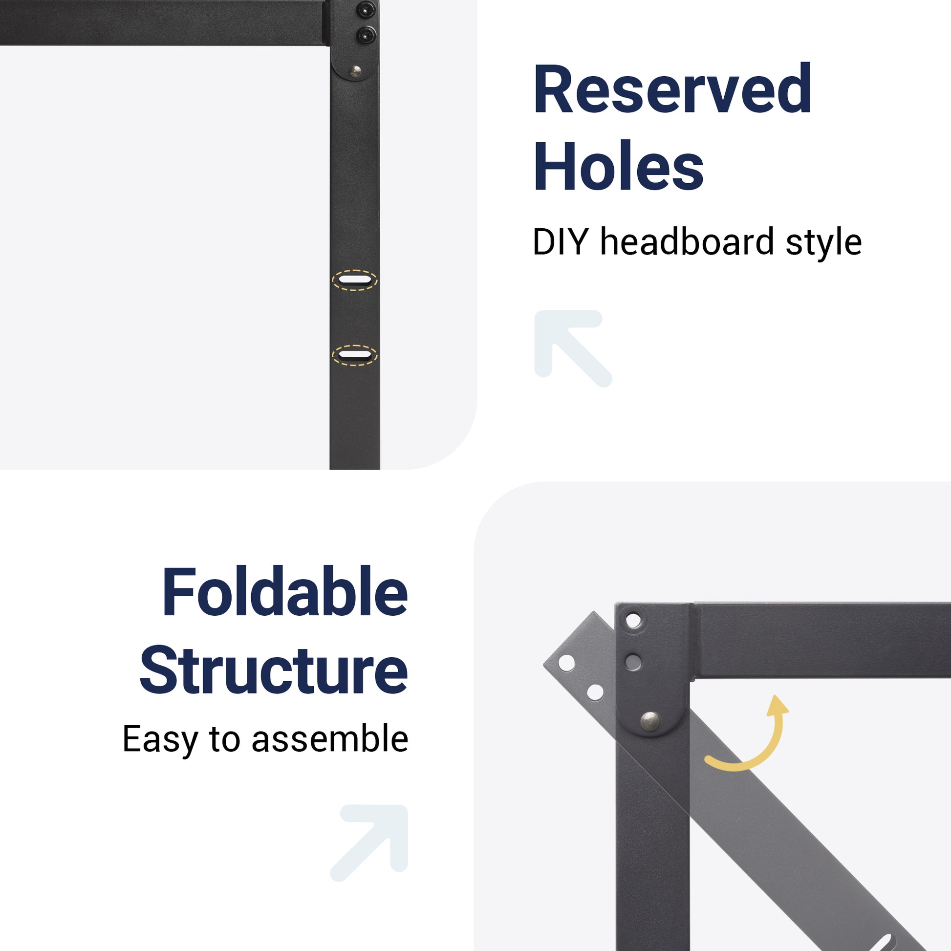 - DIY Headboard Design: Pre-drilled holes allow quick attachment of any headboard style—wood, fabric, or metal. Customize your bed’s look easily, ideal for renters or design lovers.