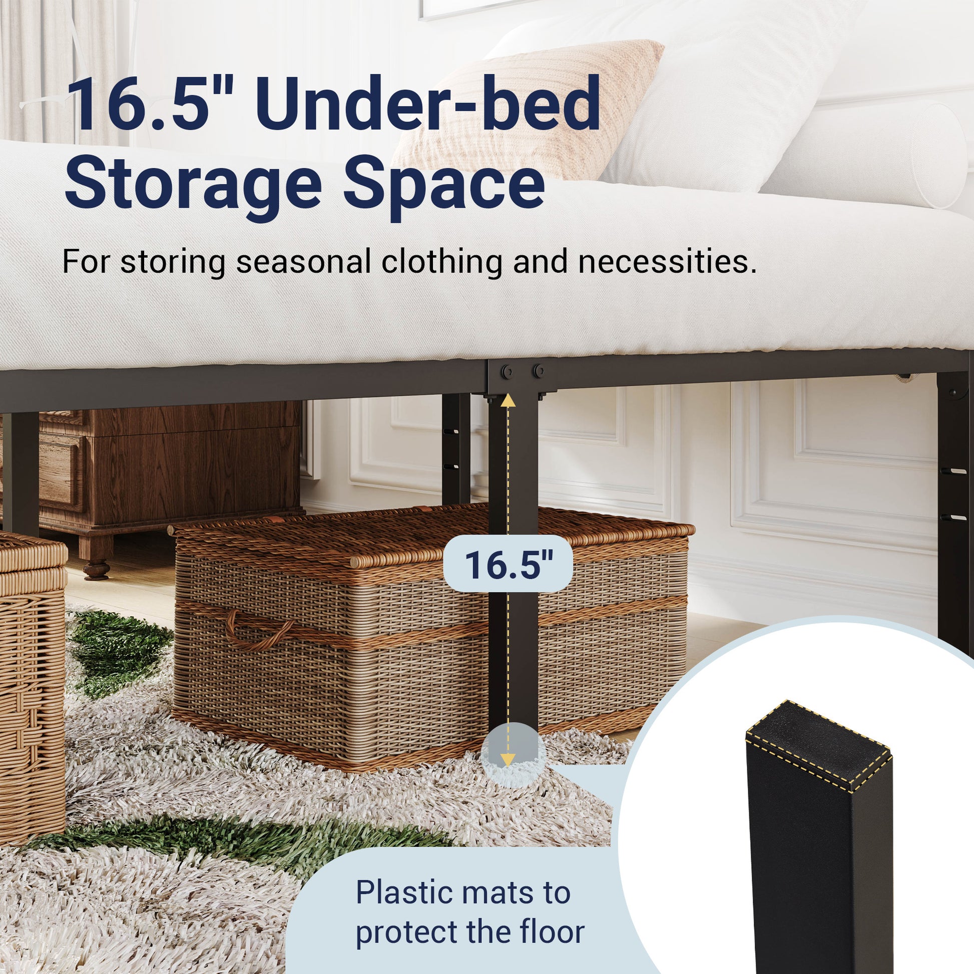 - Larger Under-bed Storage Space: The 16.5'' elevated design keeps essentials hidden yet accessible, ideal for small spaces. Durable legs ensure stability while creating clutter-free storage.