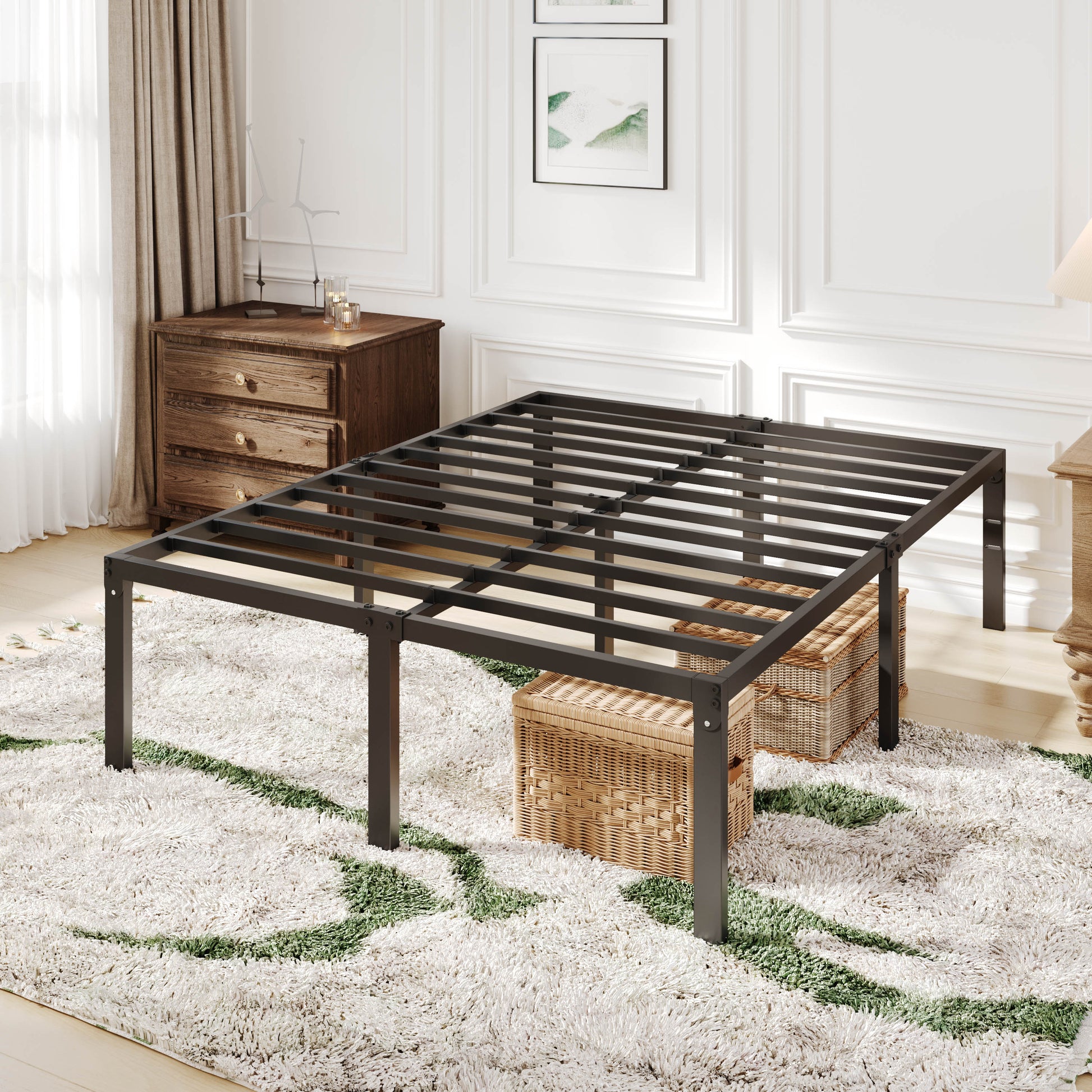 Allewie Heavy Duty Metal Platform Bed Frame with 16.5'' Large Under Bed Storage Space, Black