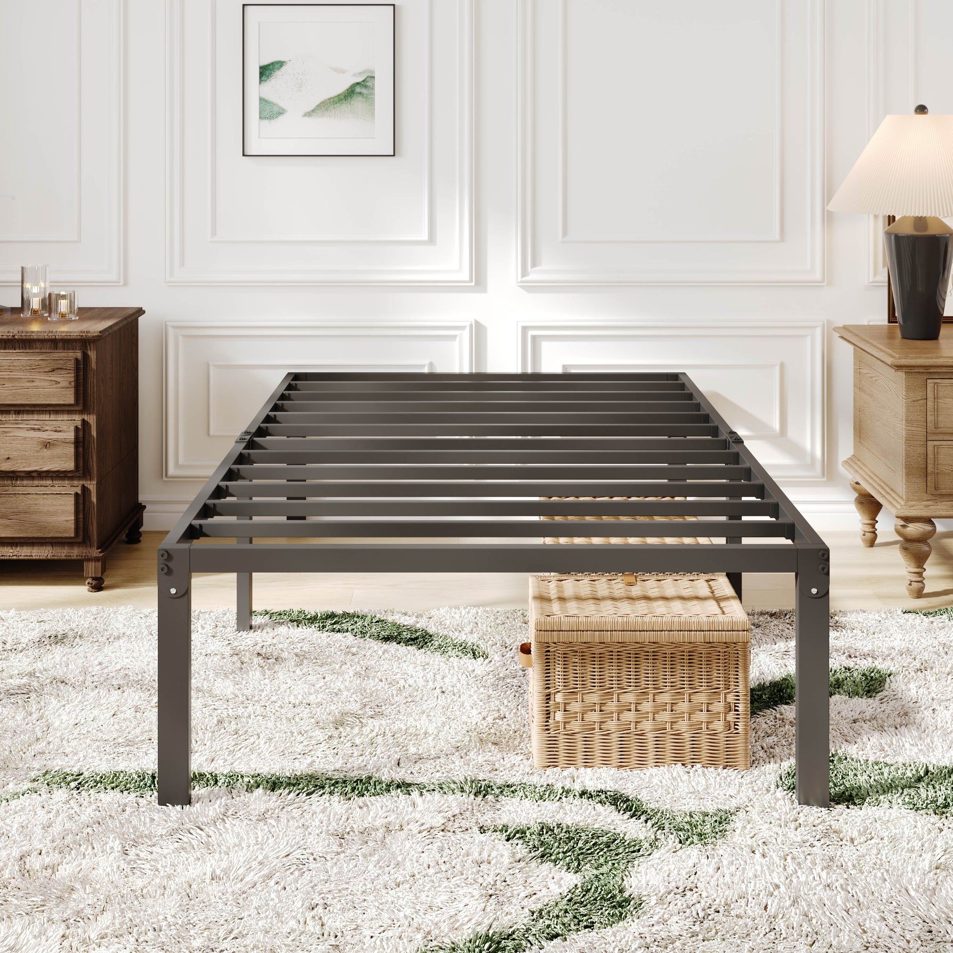 - No Box Spring Needed: Reinforced slats provide firm, even mattress support, eliminating box spring costs. Optimal spacing enhances airflow, prevents sagging, and extends mattress life.