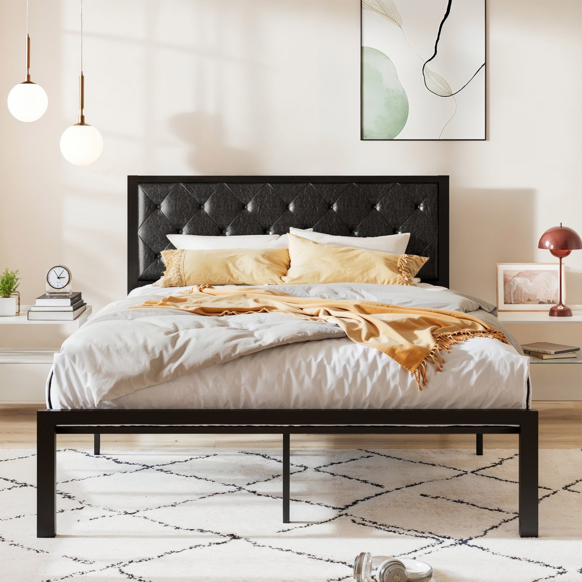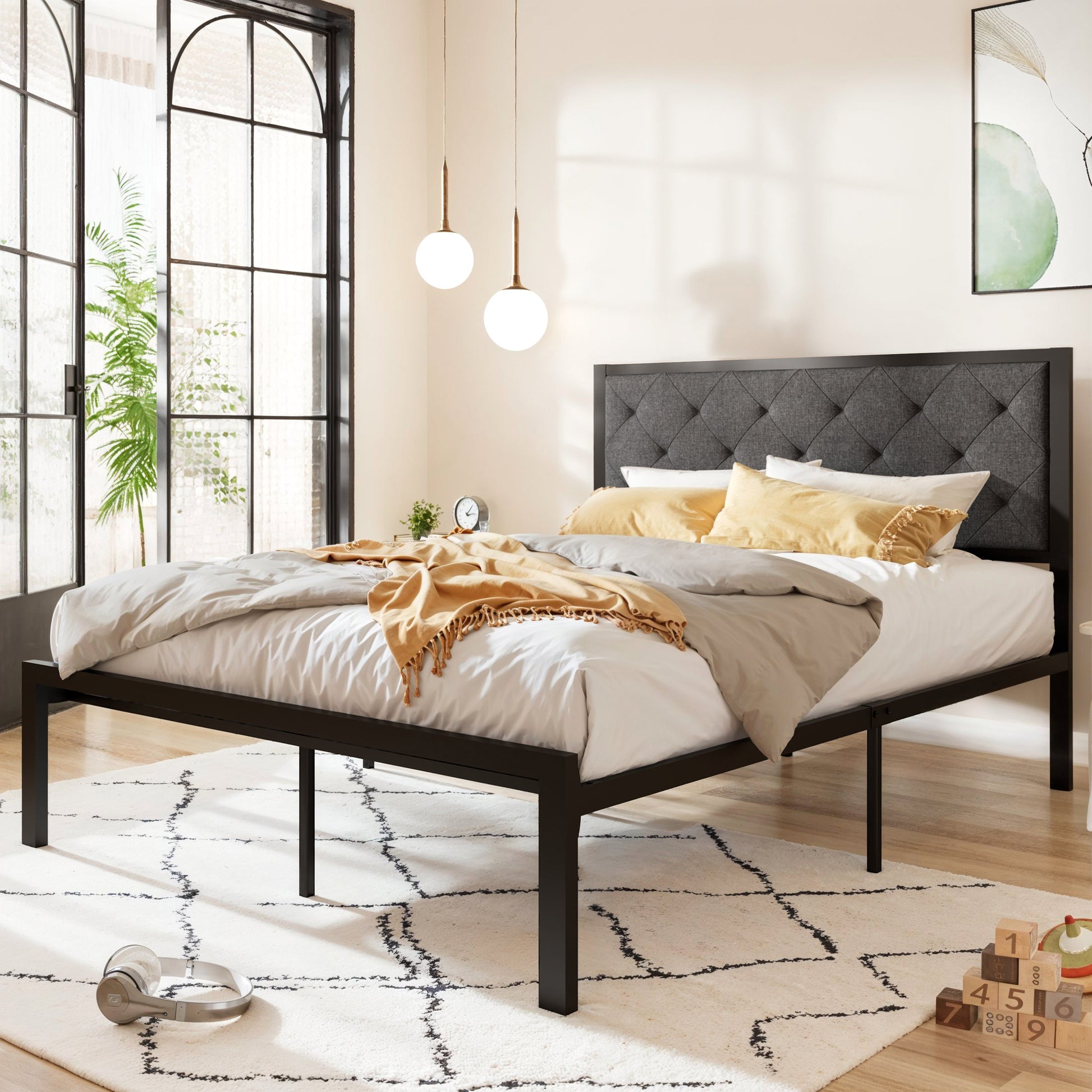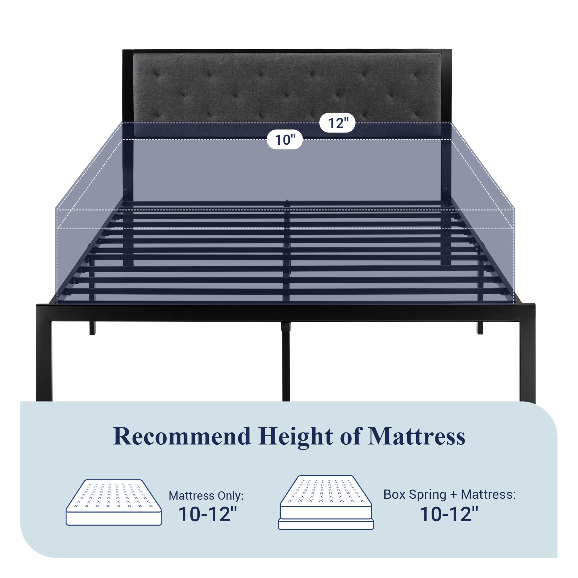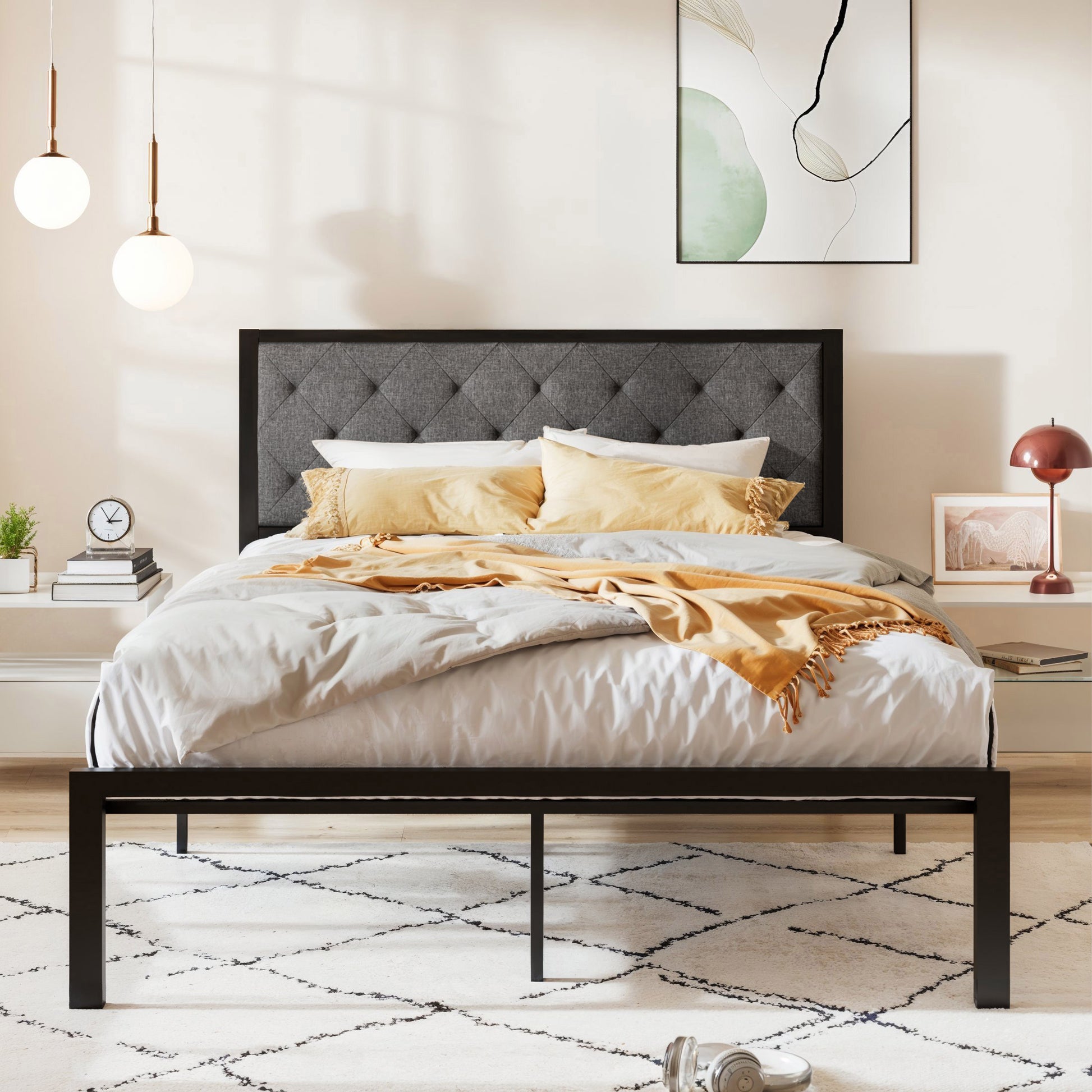 Allewie Metal Platform Bed Frame with Tufted Diamond Stitched Fabric Headboard