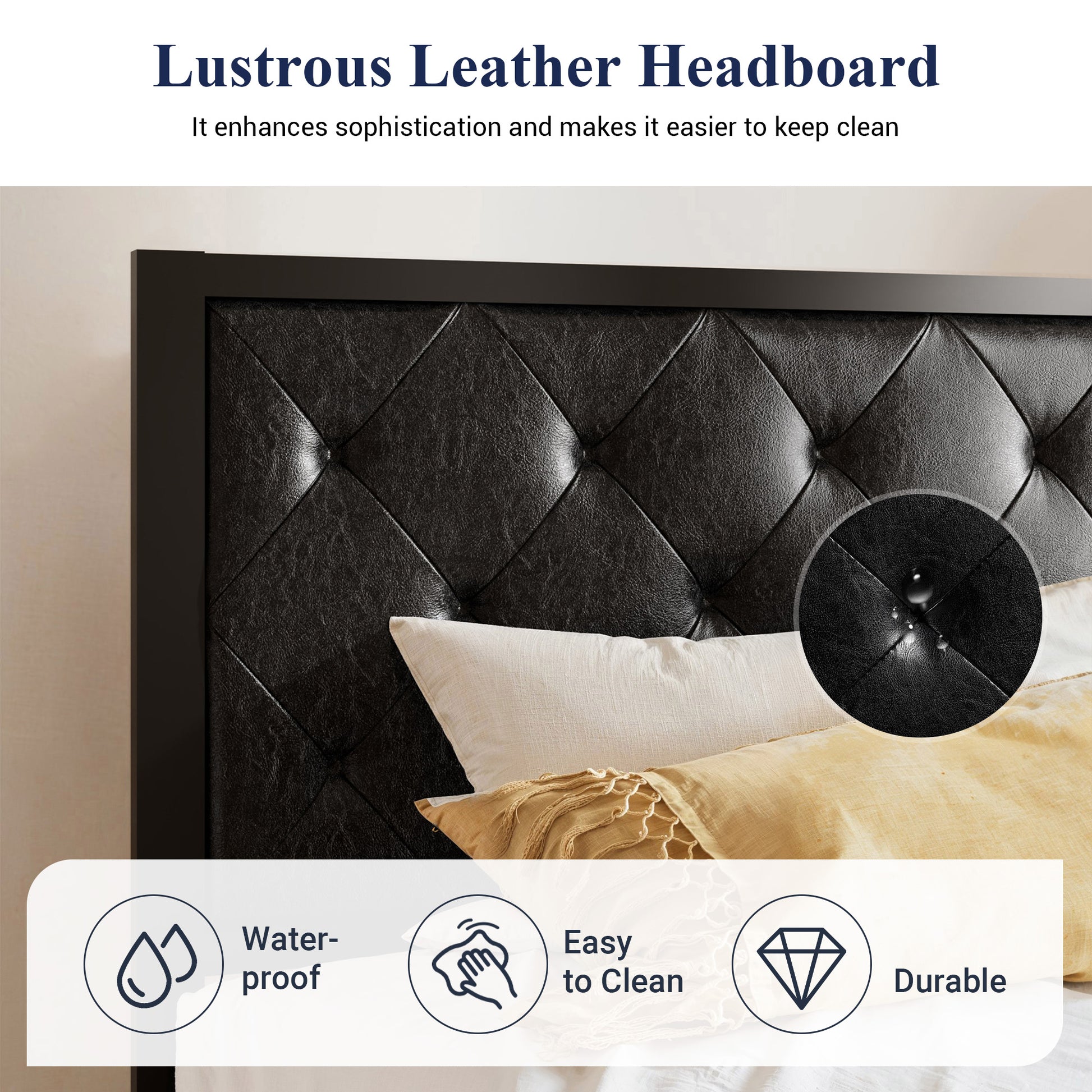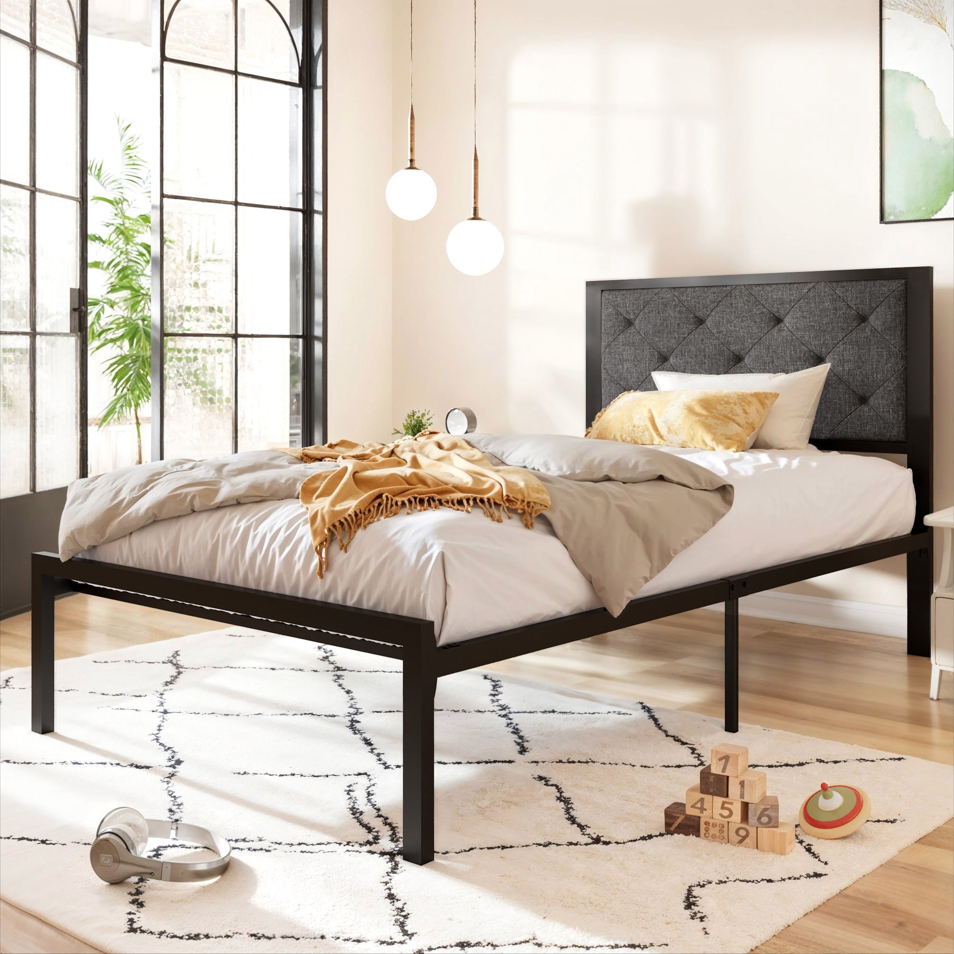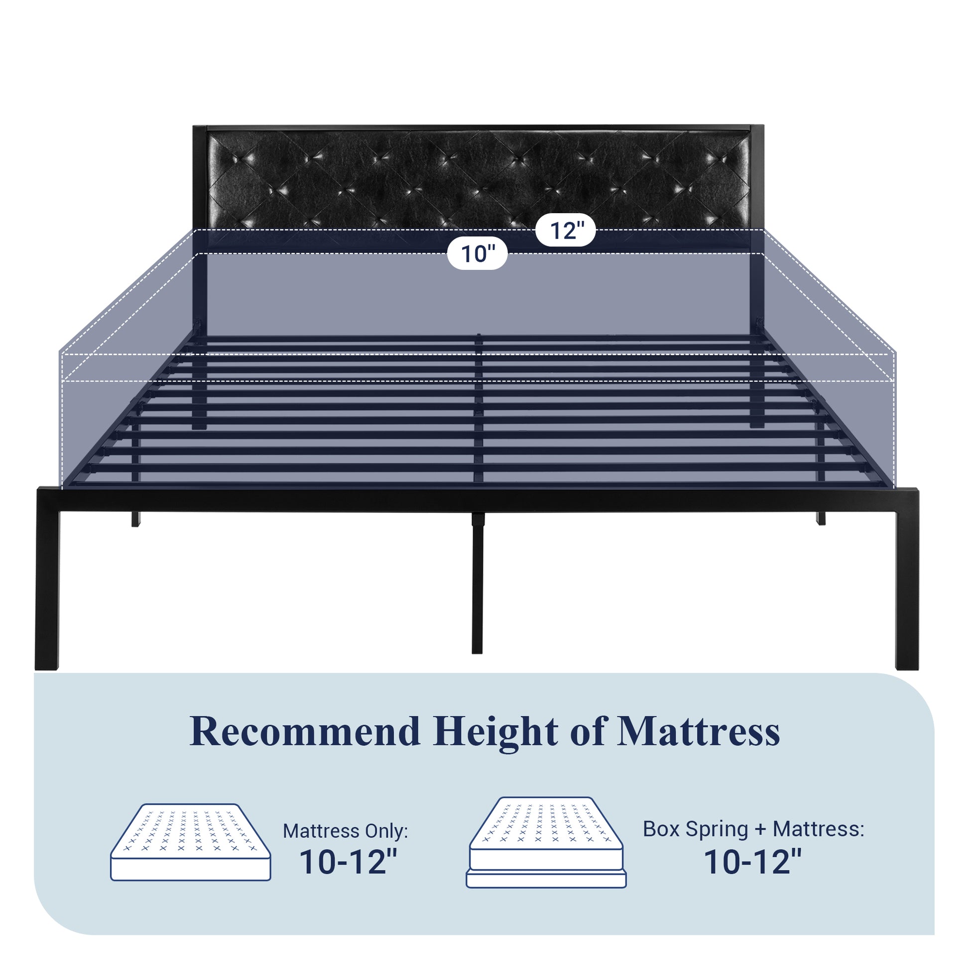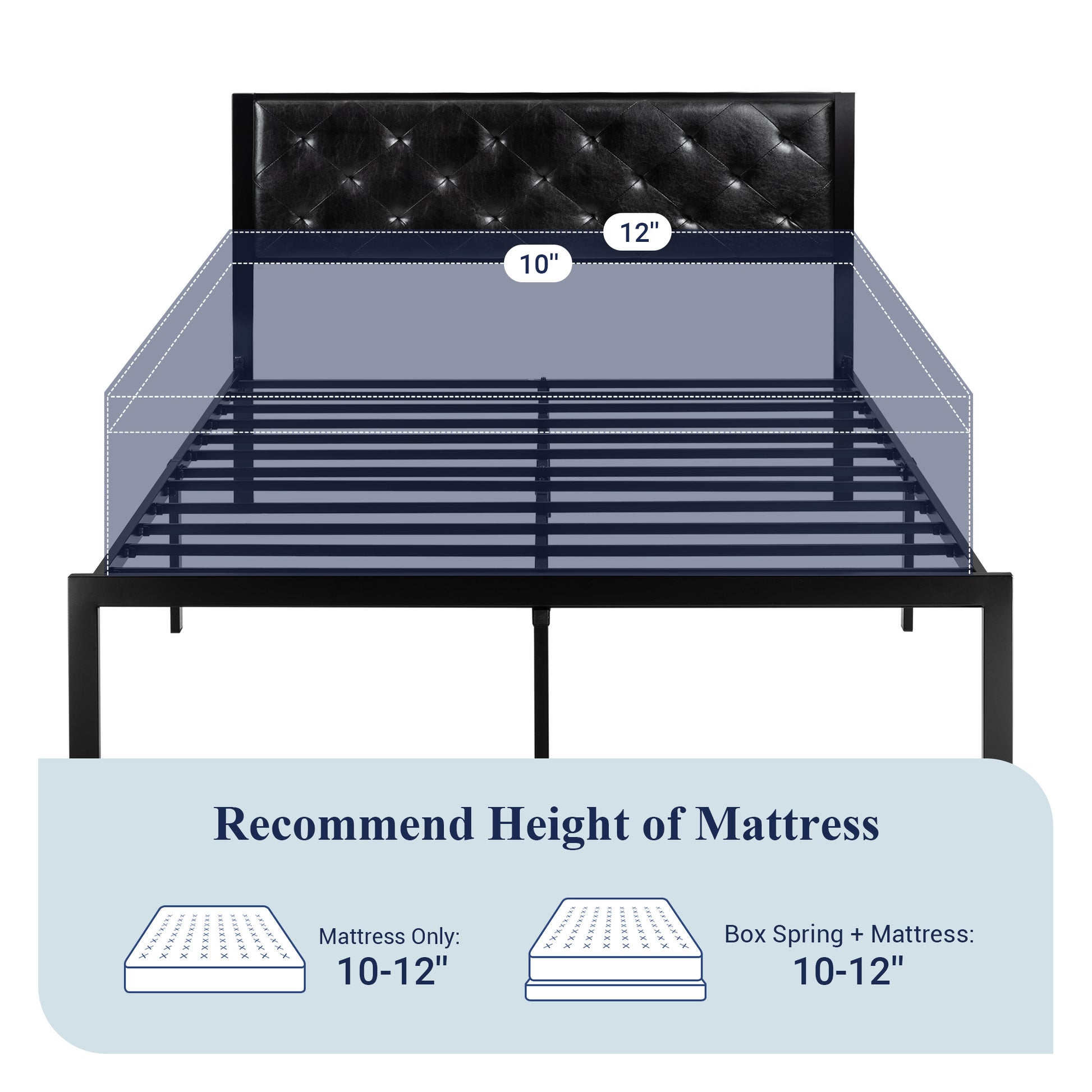 Allewie Metal Platform Bed Frame with Tufted Diamond Stitched Fabric Headboard