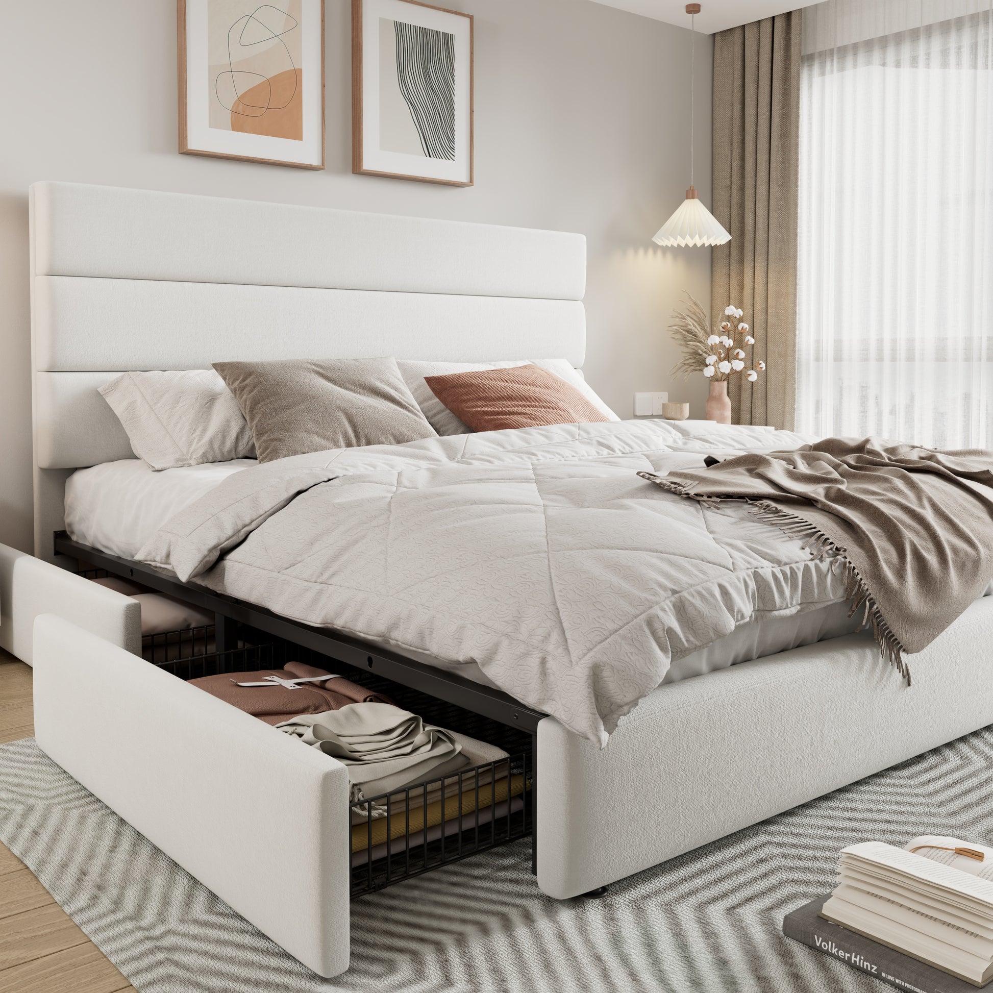 - Ample Under‑Bed Storage: Four large pull‑out drawers on smooth, silent rollers give this queen storage bed hidden space for bedding, seasonal clothing, or shoes—maximizing organization without sacrificing floor area.